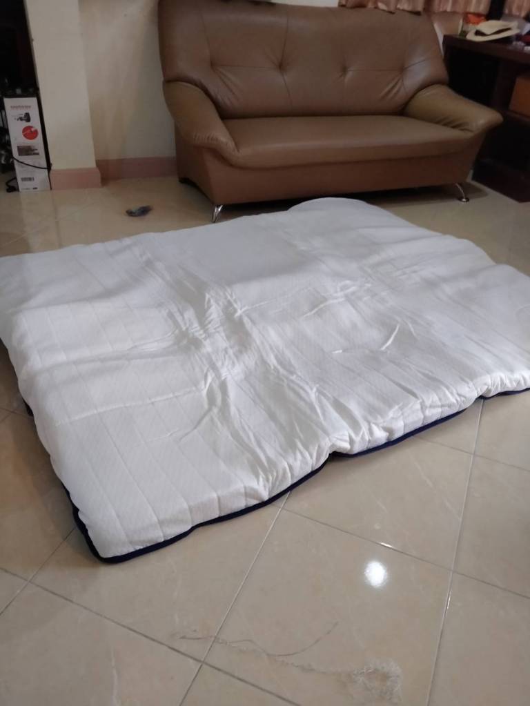 ทีนี้ด้วยความเสียดายเงิน สำหรับห้องที่เหลือยังพอมีเวลาเตรียมของ เจ้เลือกสั่งของผ่านทางแอพลิเคชั่นยอดฮิตสามพยางค์ ของอื่นๆไม่มีปัญหา แต่ติดอยู่อย่างเดียวที่เป็นปัญหาใหญ่เลยคือ ฟูก เจ้เลือกสั่งจากร้านที่มีรีวิวดี ในรูปดูดี ราคาโอเค แต่ปรากฎว่าพอฟูกจริงมาถึง มันใช้ไม่ได้ มันกลายเป็นแค่เบาะรองนอนบางๆเท่านั้น มันไม่ใช่ฟูก