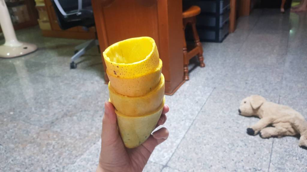 ปกติถ้าเราจะกินมะม่วงสุก ตามหลักปฏิบัติทั่วไปแล้ว ก็จะต้องเอามะม่วงไปล้างน้ำให้สะอาด แล้วนำมาปอกเปลือกก่อน แล้วค่อยหั่นเป็นชิ้นๆ กิน นั่นคือวิถีที่สืบทอดต่อๆกันมา